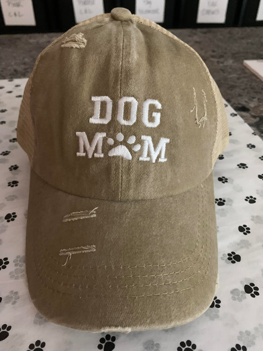 Embroidered Dog Mom Hat - Distressed Vintage Style w/Ponytail Opening!